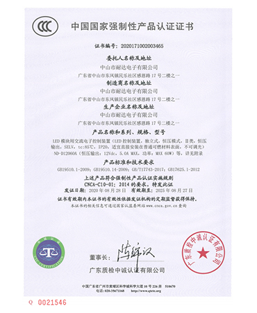 • LED恒壓電源3C證書